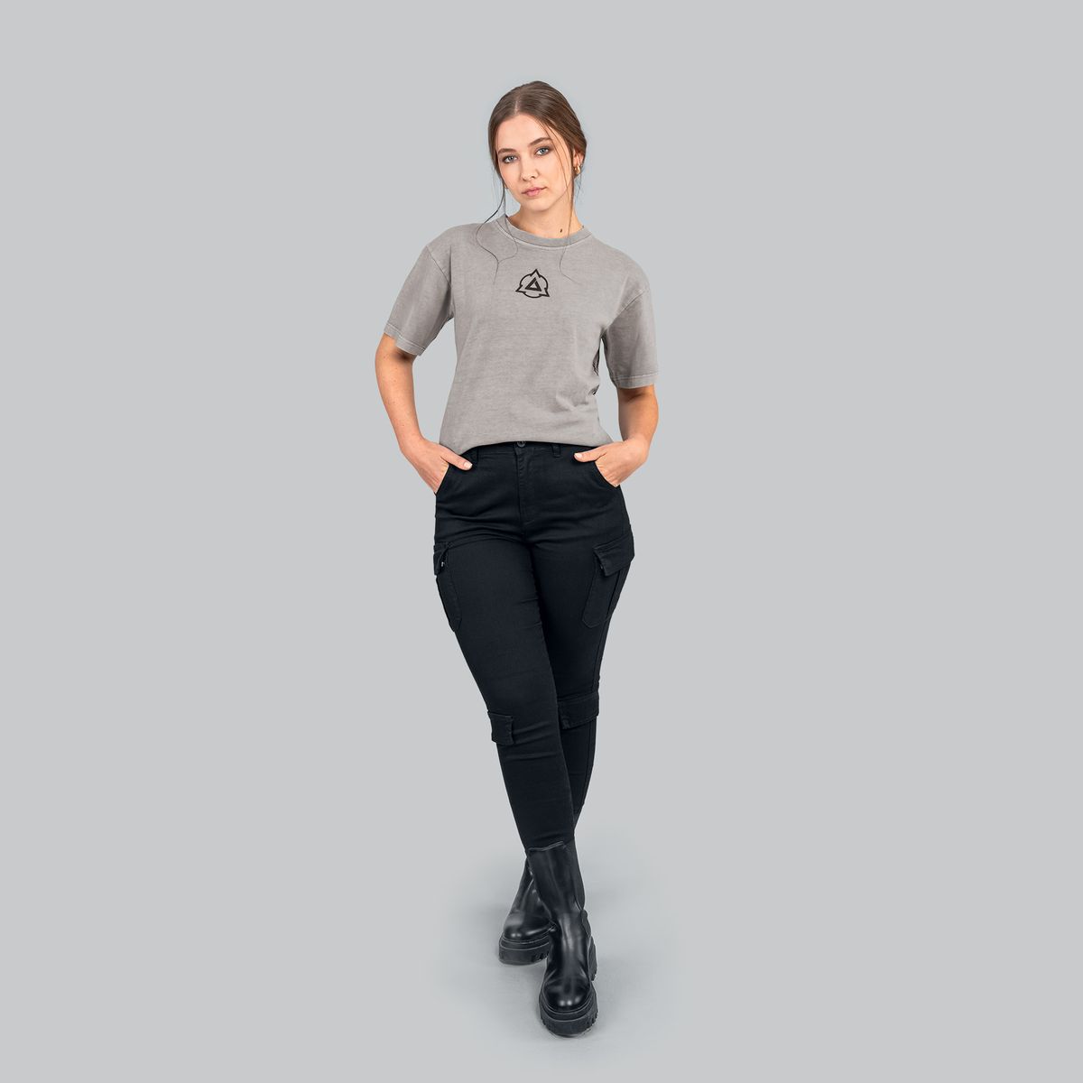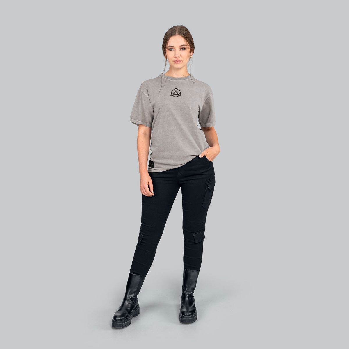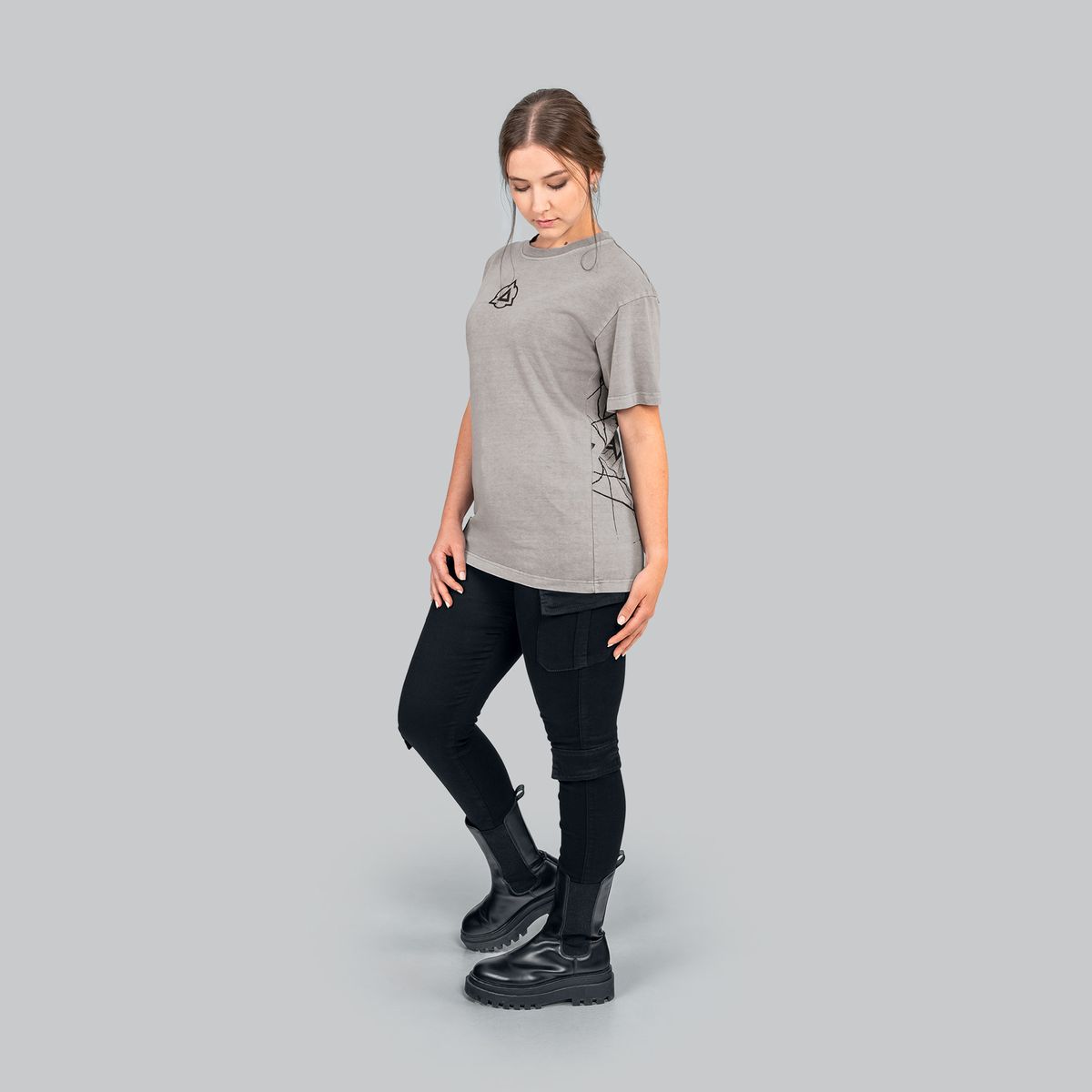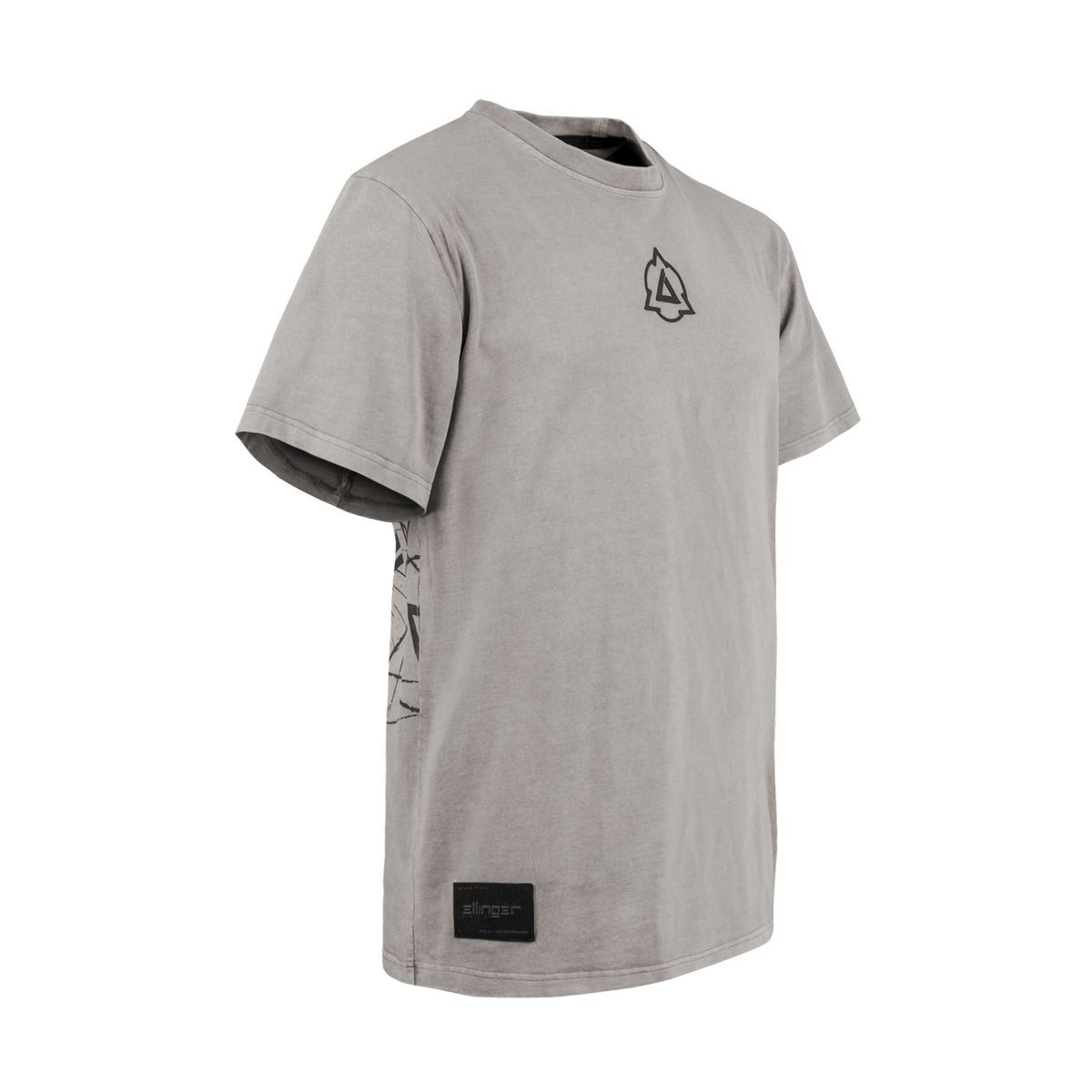 Made from heavyweight 100% cotton jersey (240 GSM) with a unique acid wash, it features an embroidered Wild Hunt emblem and high-quality screen prints on the back. The raised rubber Igni sign on the front adds structure, while a felt rubber ellinger patch near the hem provides a subtle brand detail.